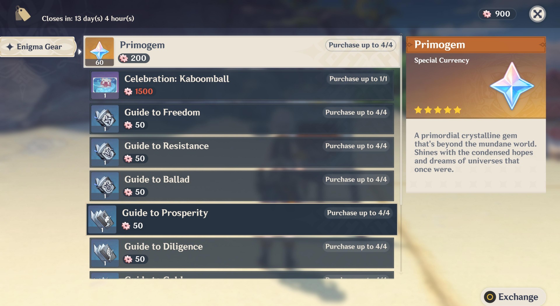 Completing these tasks rewards you with primogems and Enigma Gear, a currency that’s used in the event shop.