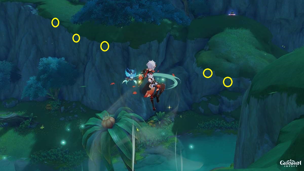As mentioned earlier, Kalpalata Lotus nodes grow along the cliffsides of Sumeru’s hills and mountains, especially those near rivers and waterfalls. That means you’ll need to glide and climb to reach them, which can be quite a hassle. On the bright side, the plants tend to be clustered together, so most locations will have five or more. Likewise, if you already have Nahida, holding her elemental skill enables aiming mode with the camera, so you can gather the items from further away.