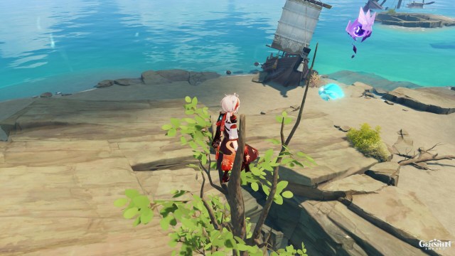 To start with this one, simply go to the bluff that’s near the coastline. Here, you’ll find an Electroculi and a Sakura Bloom node.