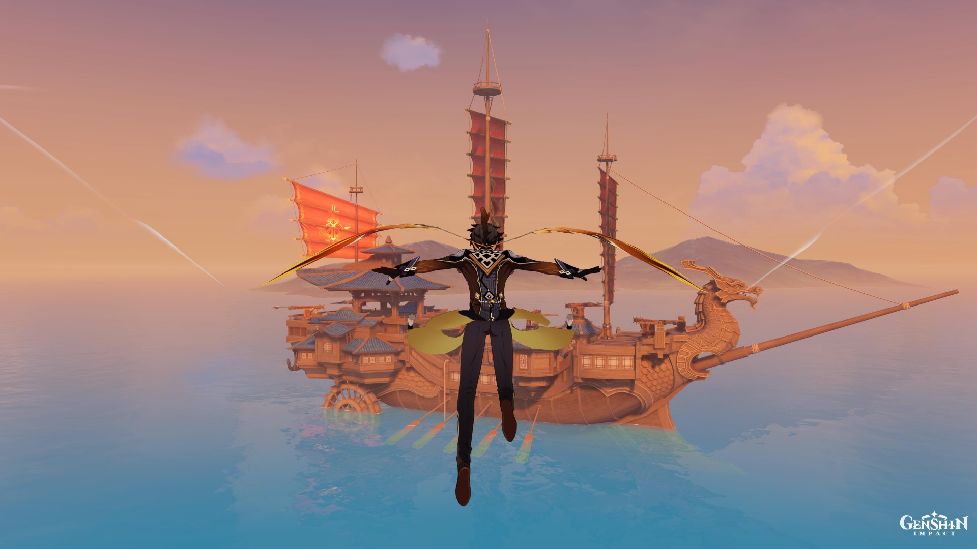 Seeing that his friend had fallen, Kazuha had no choice but to escape with the Masterless Vision. This act eventually led him to the Liyue region and Beidou’s ship.