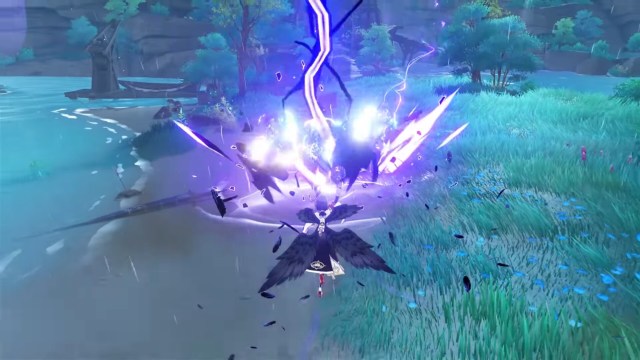 - Tengu Juurai: Stormcluster – The explosion spreads into four ruptures that also deal AoE Electro damage.