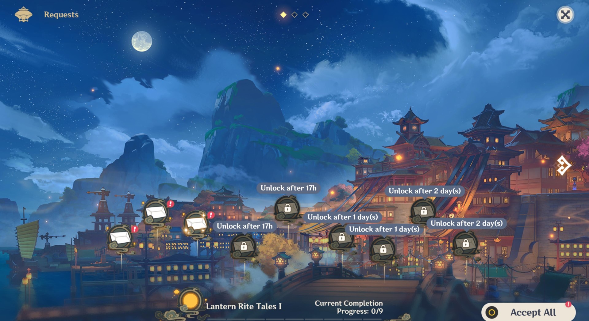 When you’re done, you can check the Lantern Rite Tales screen again to see that multiple quests have popped up. Only three are available today, but more will go live from February 11 to February 13.
