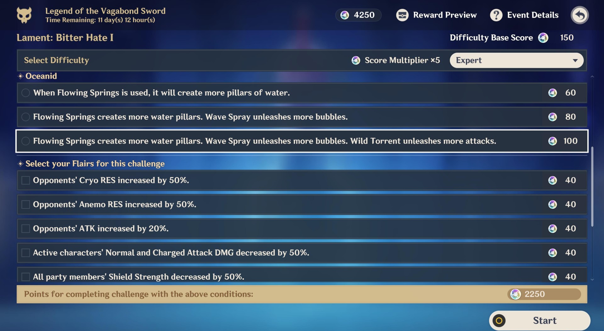 The characters with a +20% damage bonus this time around are Eula, Klee, Rosaria, and Hu Tao. Next, let’s take a look at the modifiers and flairs for the Oceanid Urania boss fight: