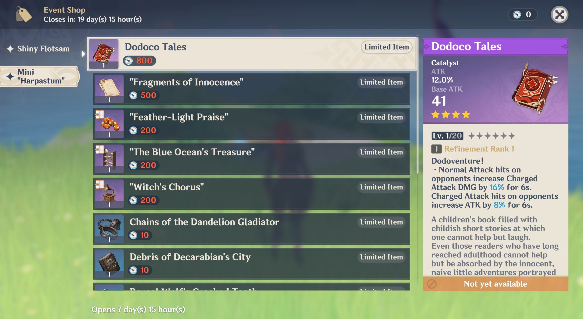 | Dodoco Tales (catalyst weapon) | 800 | 1 |
