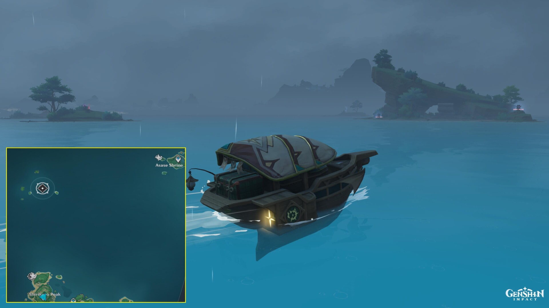 You can reach the Moshiri Kara domain in Genshin Impact by sailing your Waverider to the small archipelago. The closest Waverider Waypoints are in Asase Shrine (Seirai Island) and Shirikoro Peak (Tsurumi Island).