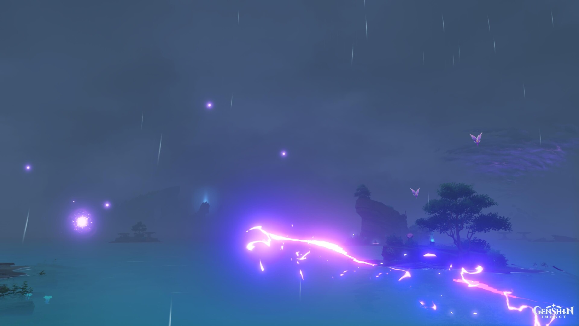 The challenge on the western island, meanwhile, requires you to collect nine Electro orbs within two minutes. You can use the Thunder Bough to grapple, as well as the nearby phase gates to travel to the other spots.