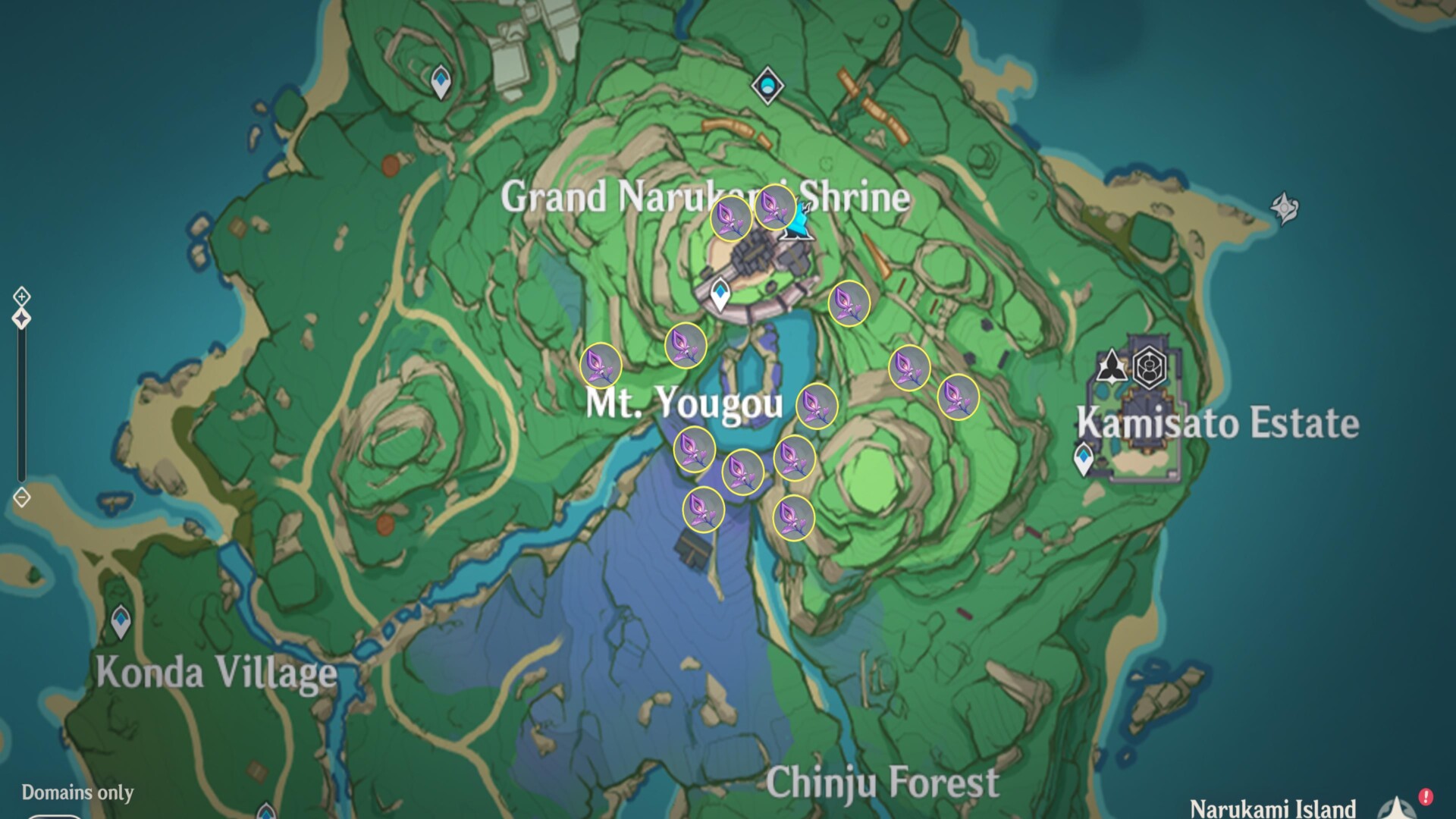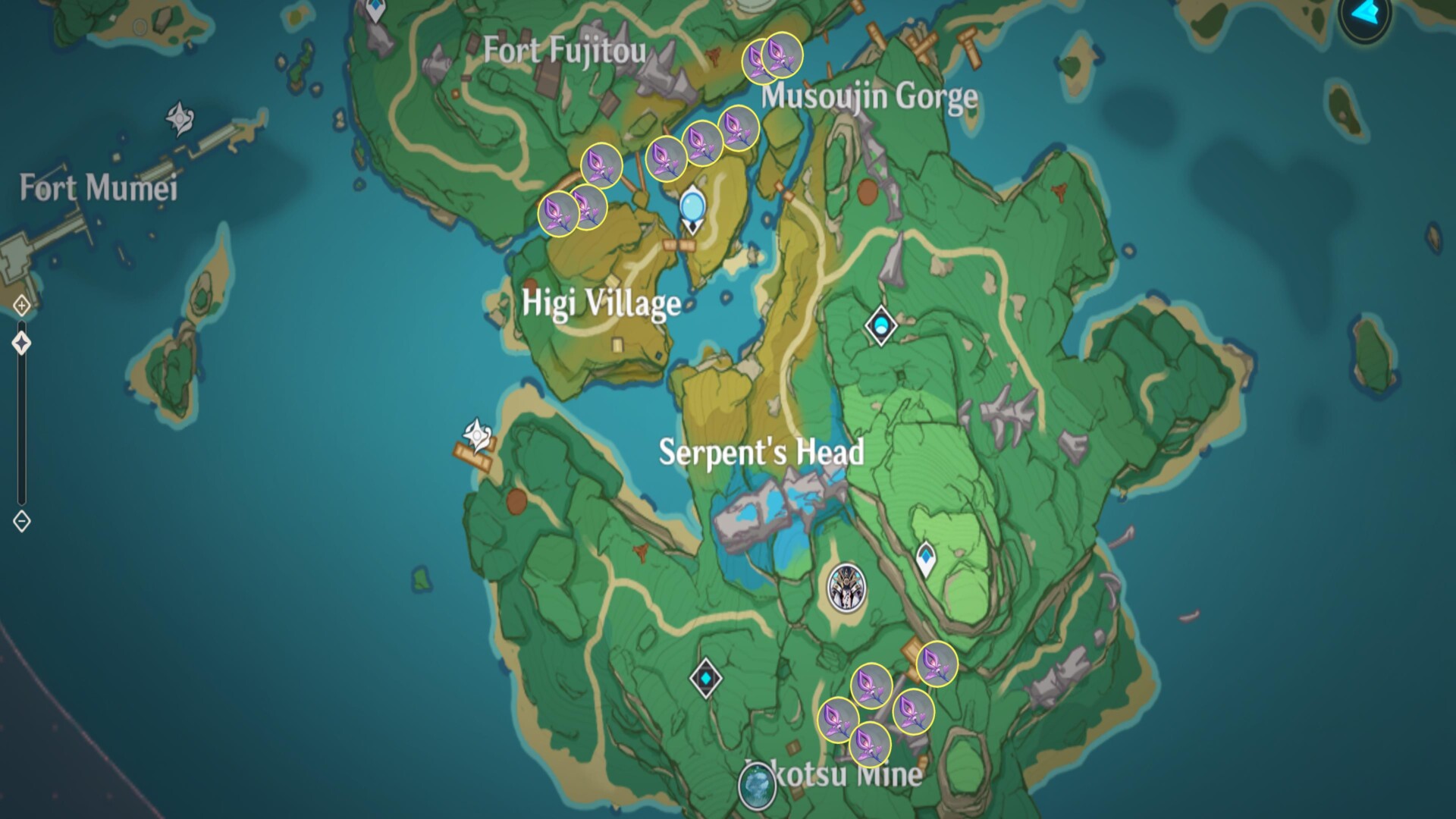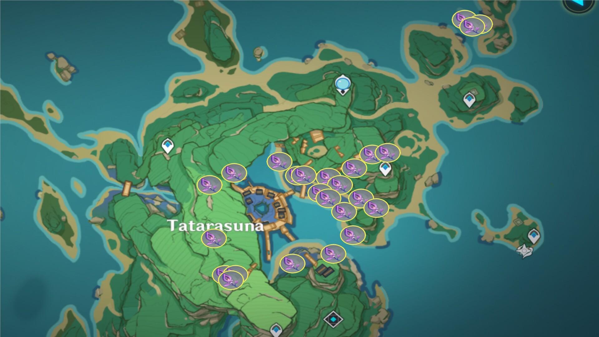 You can see the Narukami Island Naku Weed farming locations on the map below:
