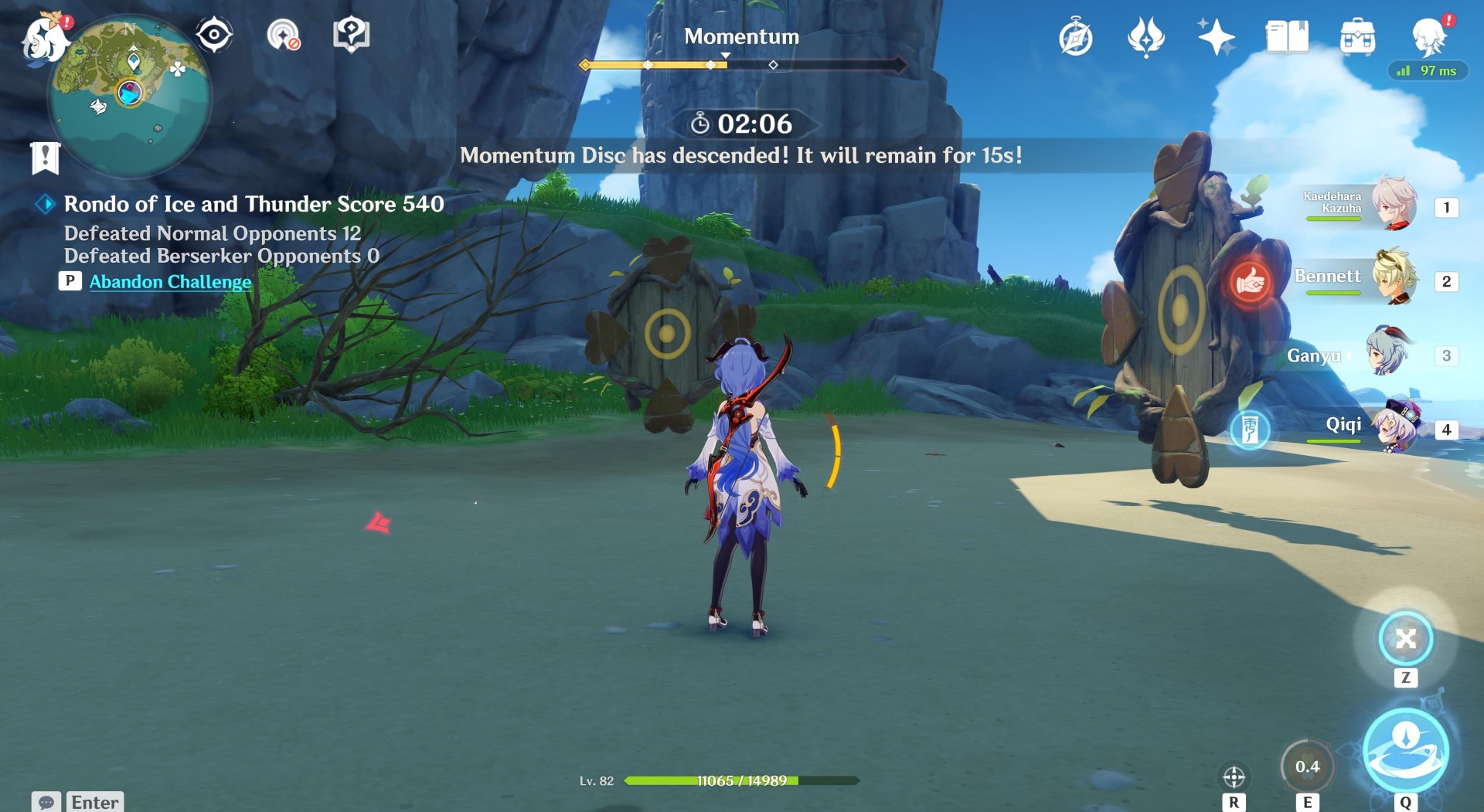 The objective here is to eliminate as many mobs as possible within the time limit (three minutes and 30 seconds) so you can amass points. Due to numerous enemy waves, you’ll want to bring hard-hitting, AoE-blasting characters or those with great support capabilities. Examples include Ganyu, Childe, Kazuha, Venti, and Bennett. Keep attacking your foes until the timer has expired. Hopefully, you reached the maximum score threshold for rewards (just above 2,100 points).