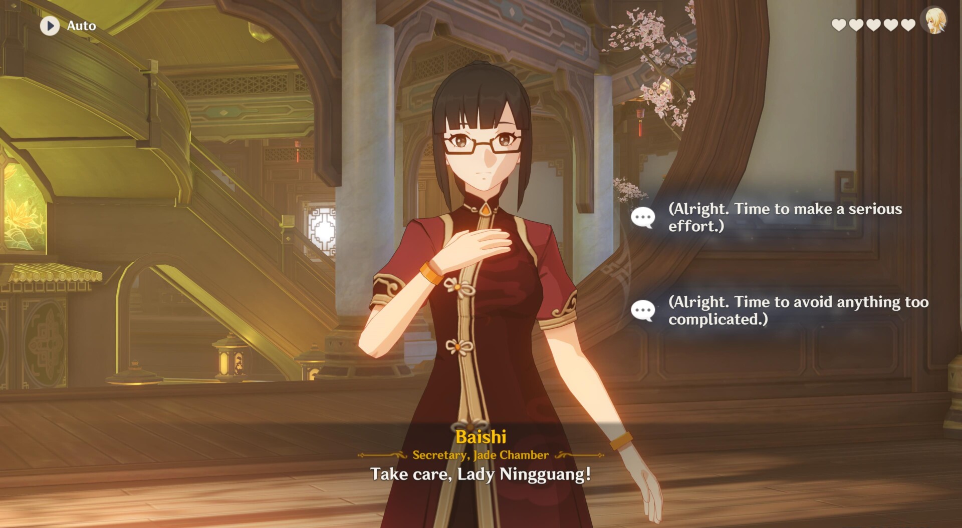 Ningguang’s Hangout Event in Genshin Impact is called “The Jade Chamber’s Returning Guest.” The main branches don’t actually start with Ningguang. Rather, you’ll need to talk to Baishi, one of her assistants. You can refer to the pages below for the parts that you need help with: