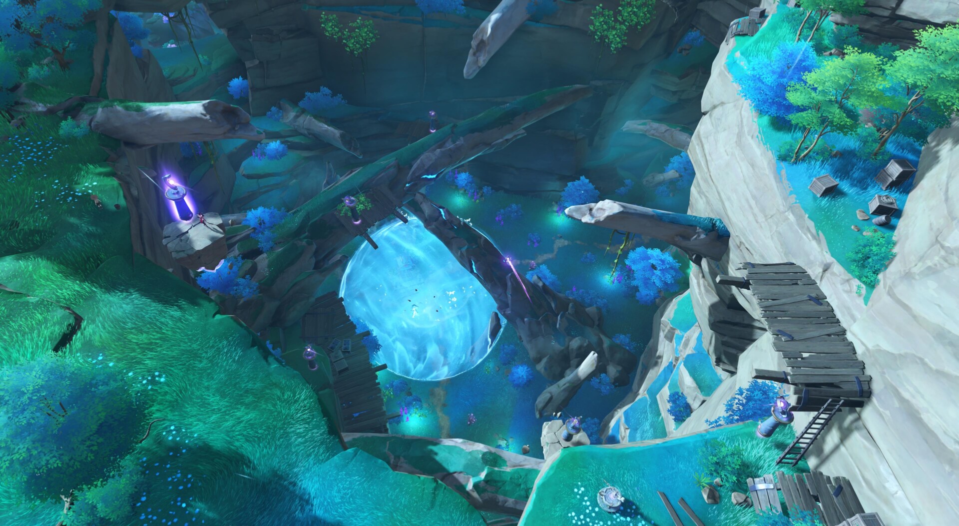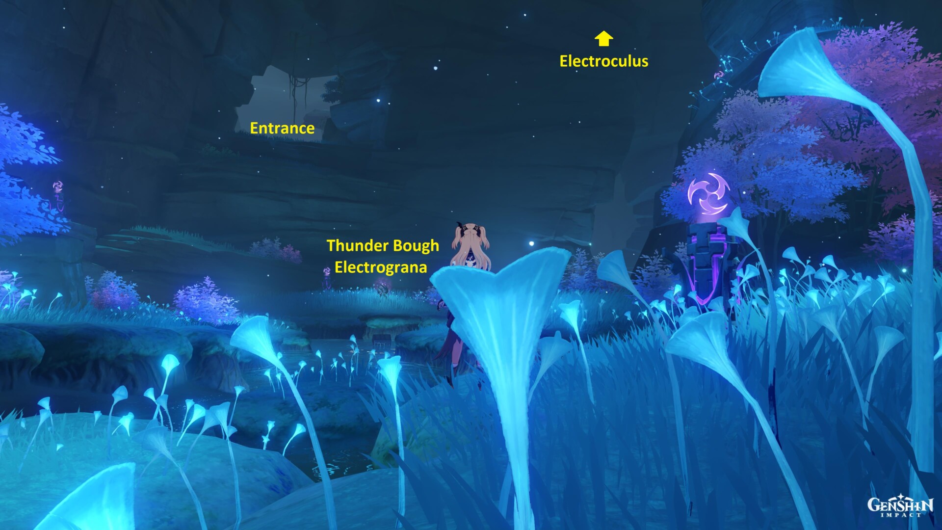 Let’s go west for now. Follow the path as it loops around. Eventually, you’ll reach an opening that leads to a large cavern with several Electro totems. Here’s what you can expect: