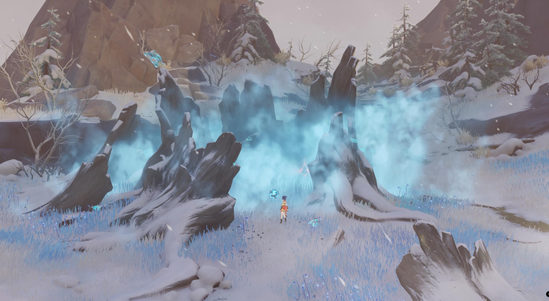 After the shard has been destroyed, interact with the orb. Surprise! It’s the Frostbearing Tree. Think of it as Dragonspine’s Statue of the Seven-esque mechanic. You’ll need to find Crimson Agates (like this region’s version of Anemoculus and Geoculus) to empower it.