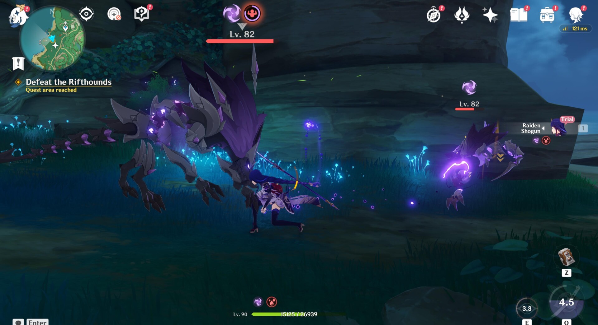 Our goal here is fairly straightforward, since we’ll just need to talk to Katheryn from the Inazuma Adventurer’s Guild before heading to the hills near Grand Narukami Shrine. There, you’ll fight several Rifthounds before the Raiden Shogun steps in to help. In the next parts, you’ll simply need to go to the marked locations, following the glowing icons next to scratch marks made by creatures.
