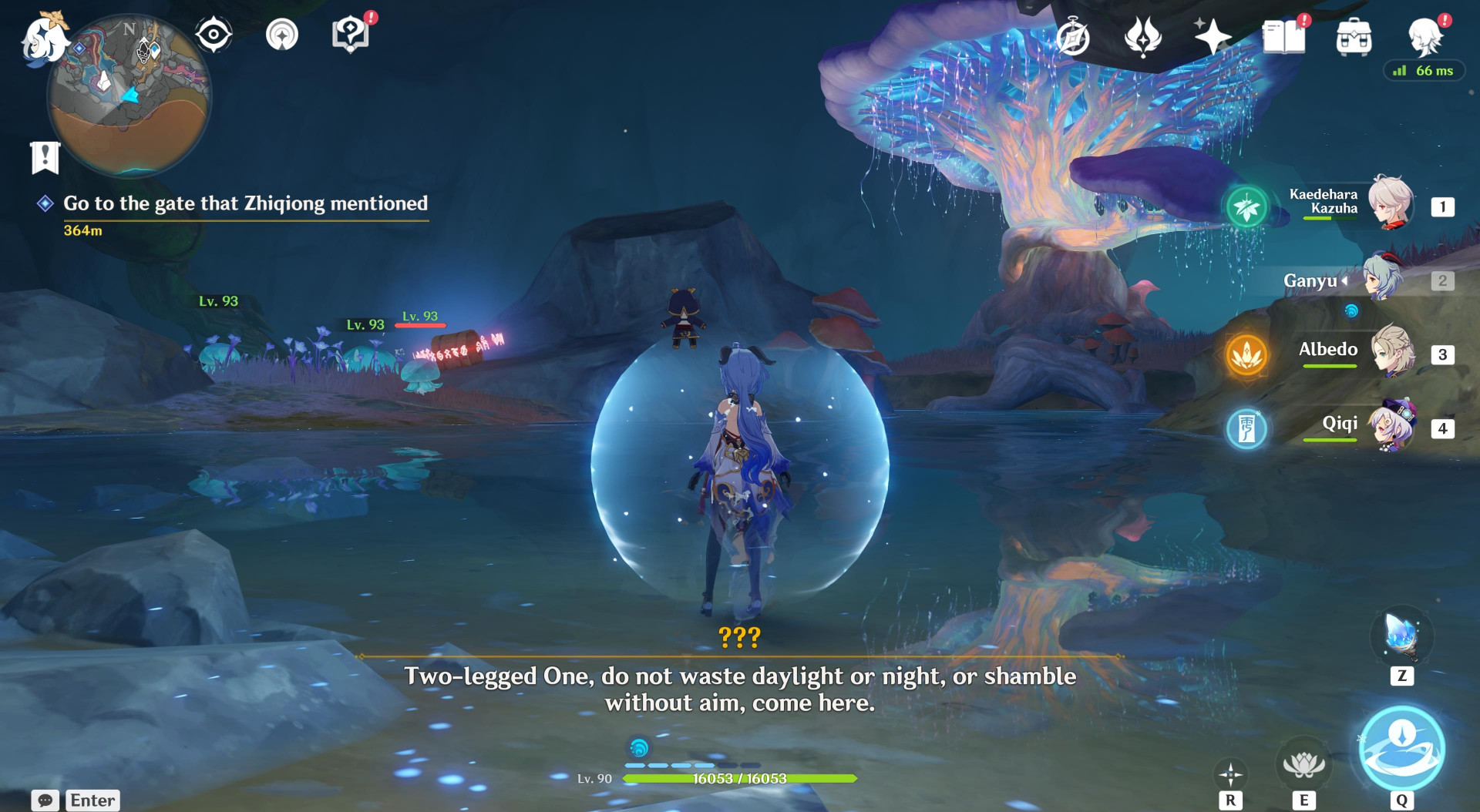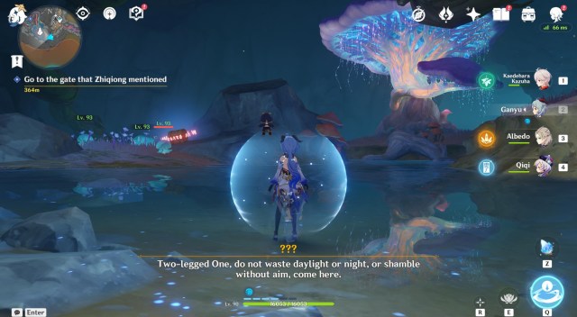 - If you go to the fast travel point, you’ll get attacked by a Fatui Cicin Mage. Before she gets killed, she’ll surrender. This unlocks a sidequest called Lost in a Foreign Land.