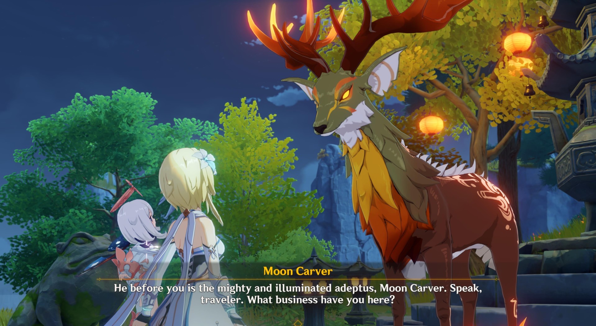 Anyway, go near the shrine to meet an animal spirit or adepti known as Moon Carver.