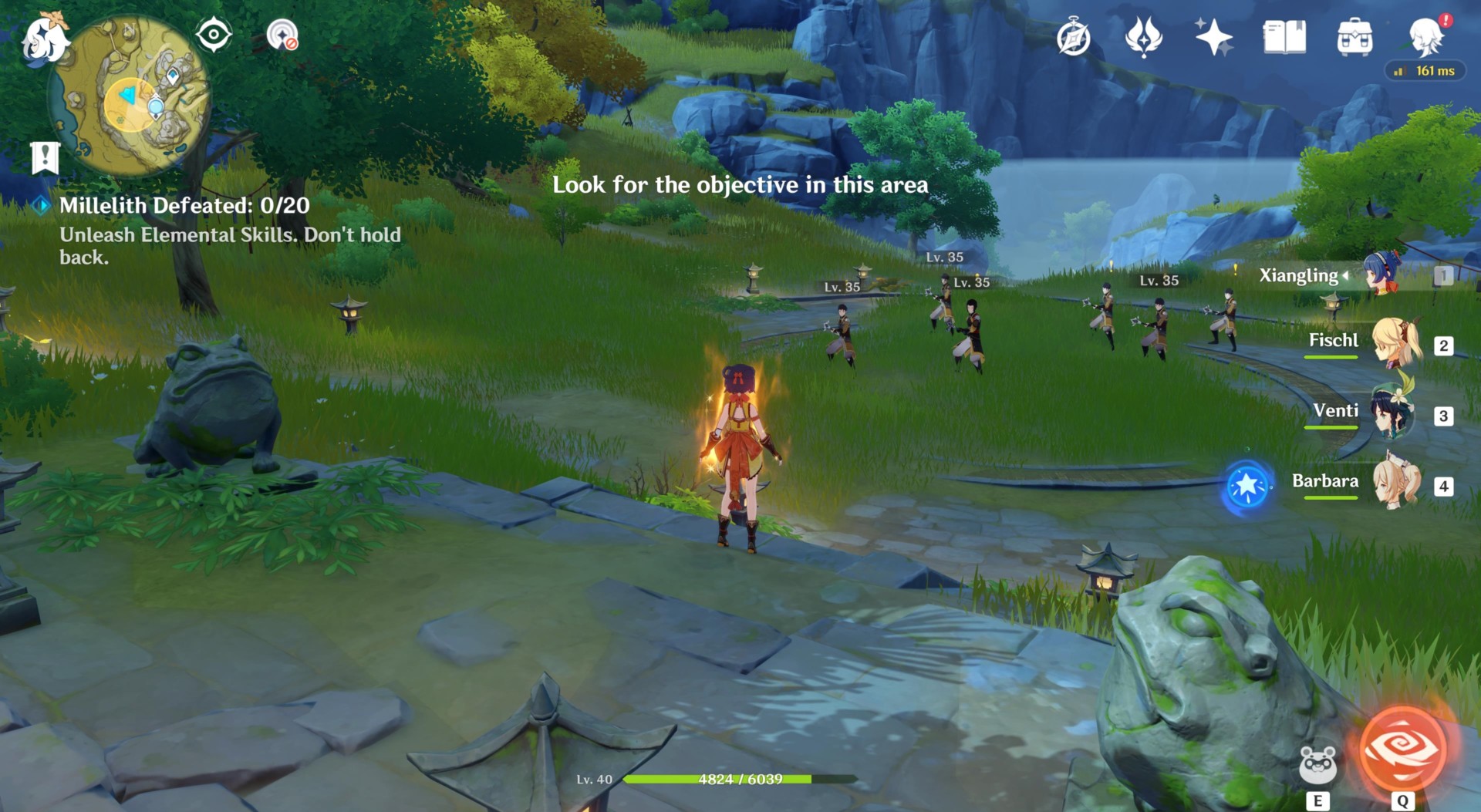Before you can finish the conversation, the guards from Liyue Harbor arrive. Take out all 20 of them.