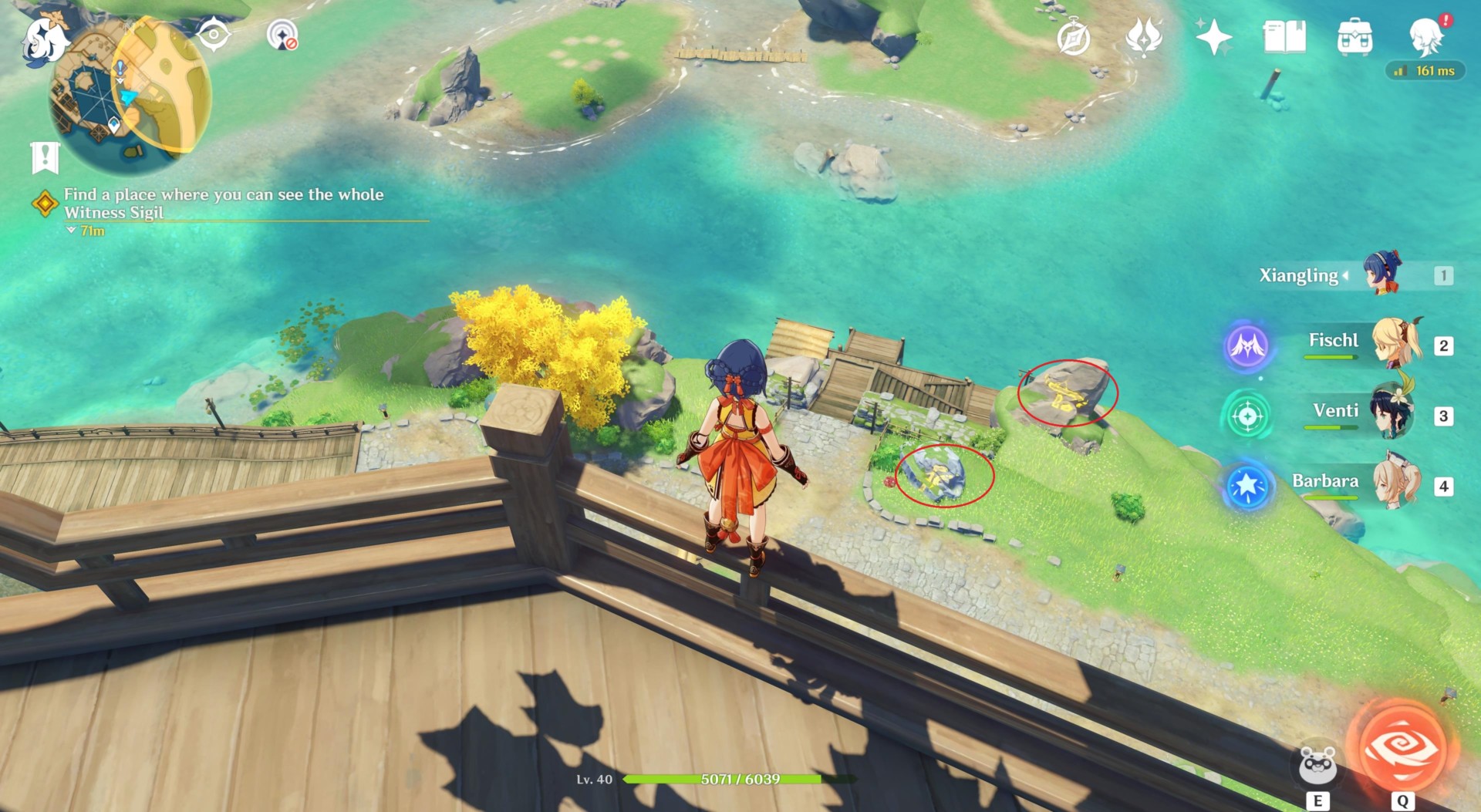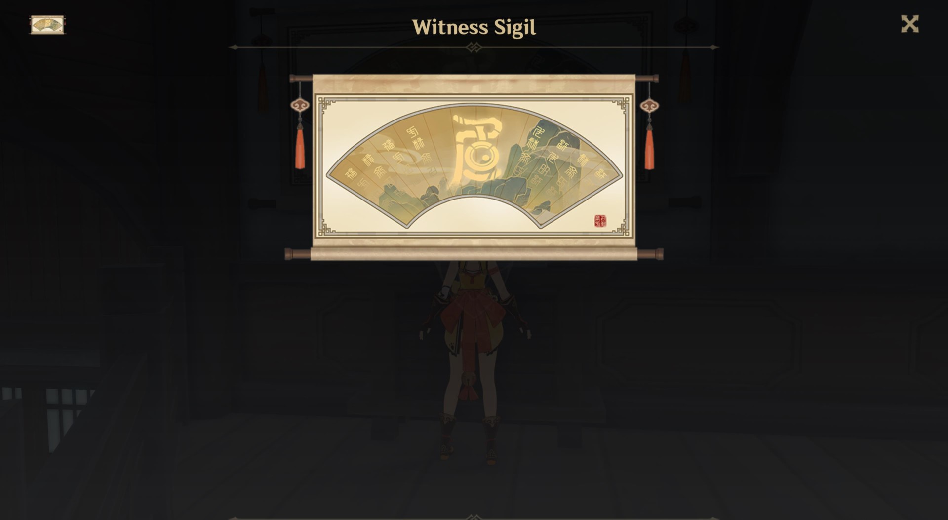 If you speak with the cook and the innkeeper once more, you’re told to check out the Witness Sigil via the decoration inside Wangshu Inn. The goal is to find the perfect spot somewhere in the area, one that lets you view the entirety of the Witness Sigil.