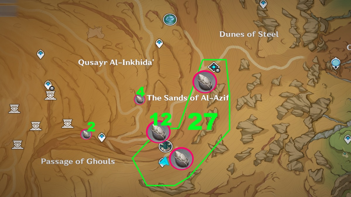 This area, by far, has the most number of Sand Grease Pupa nodes in Genshin Impact. The Wenut Tunnels/Sands of Al-Azif sector alone has almost 40 of these already. Here’s the gist: