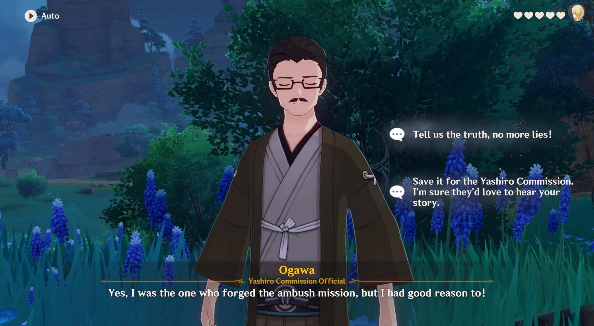 There, you’ll meet an NPC by the name of Ogawa. He admits that he was the one who put out an order for Sayu to ambush the Traveler.