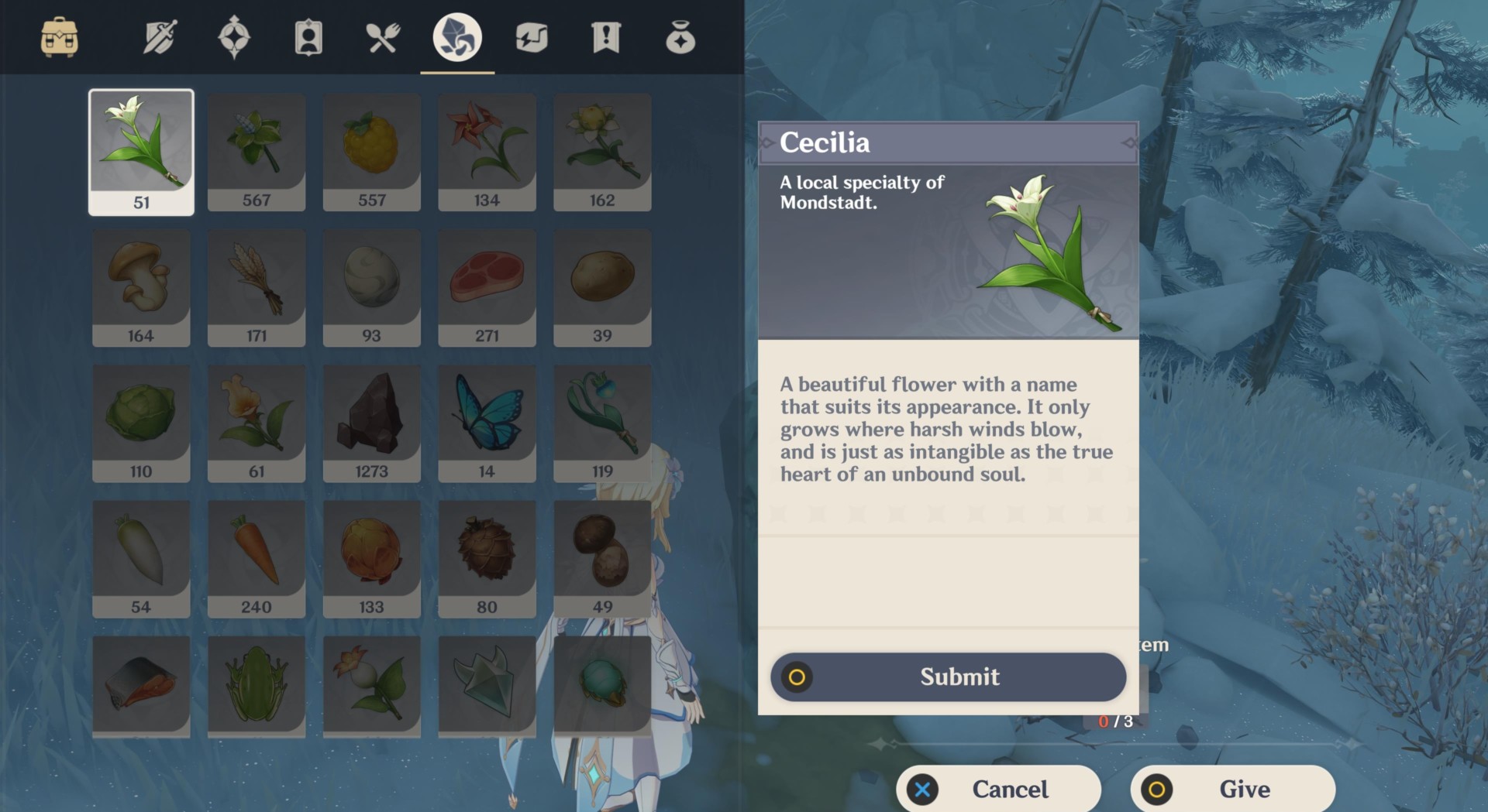 Interact with the gravestone near the fast travel point. Give three Cecilia flowers.