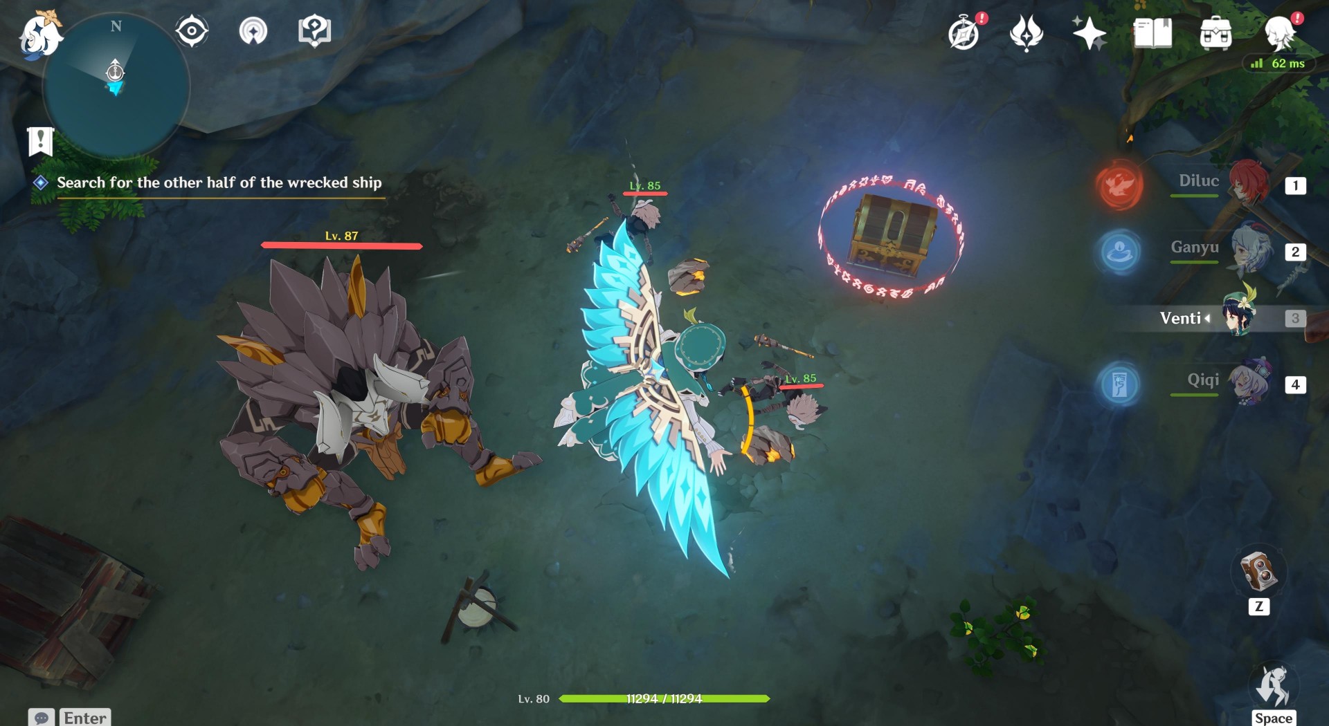 Oh, and if you take a look around, there’s a cavern with several hilichurls and a Stonehide Lawachurl. Eliminate them so you can open the chest. We’re not done yet, by the way.