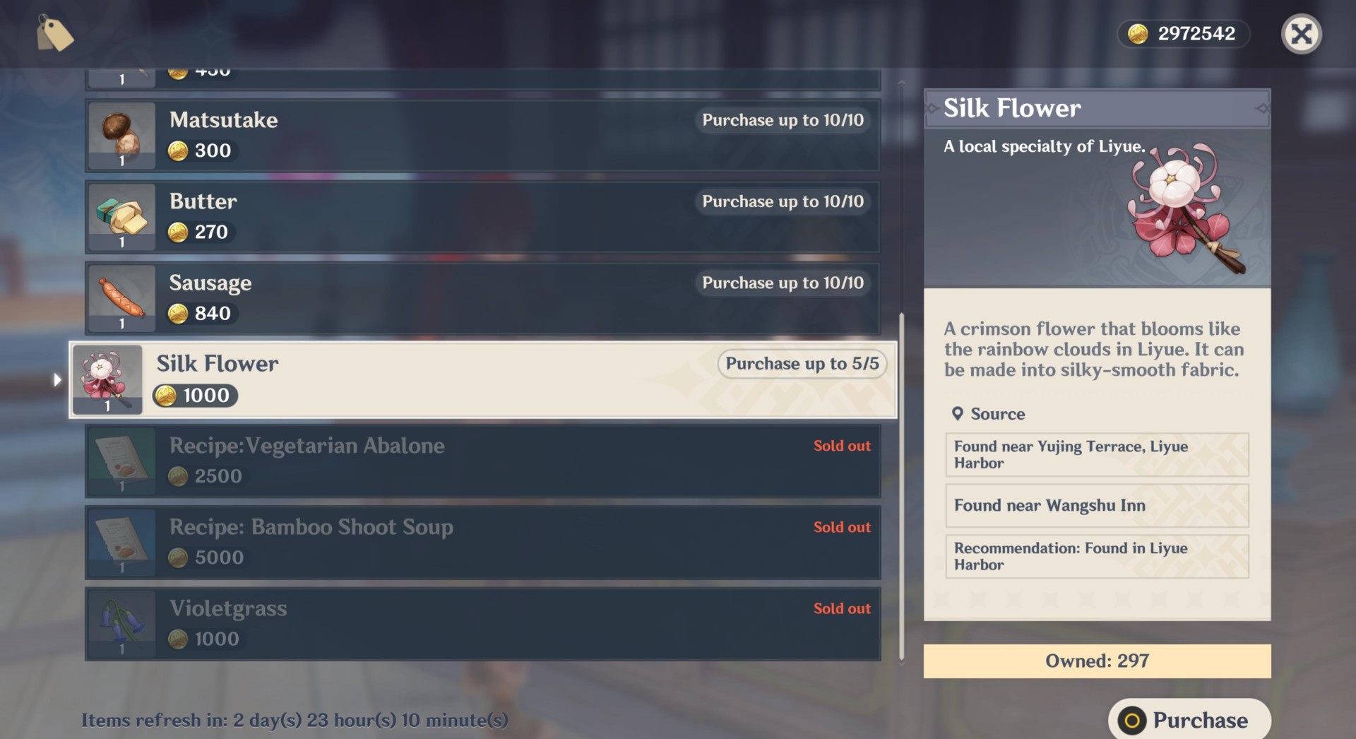 There are several Silk Flower locations in Genshin Impact. Let’s talk about each of these.