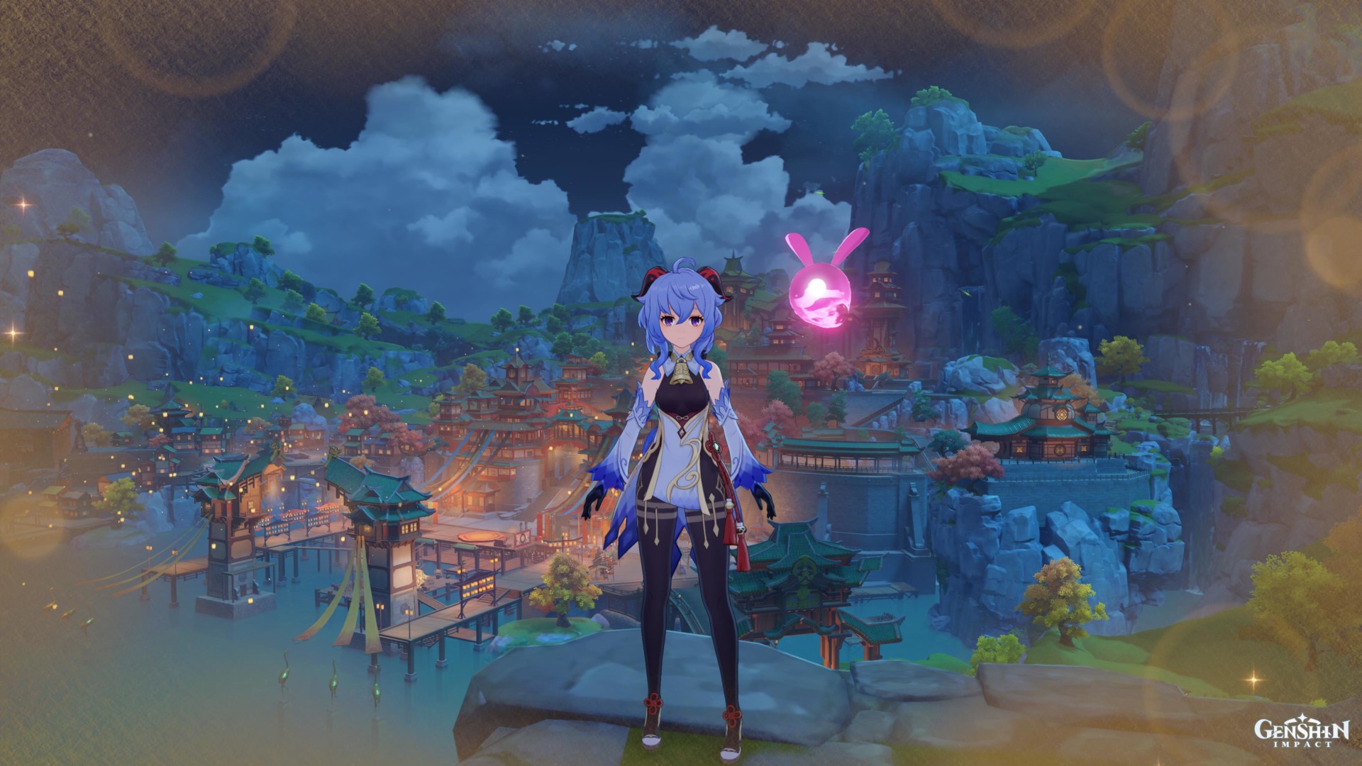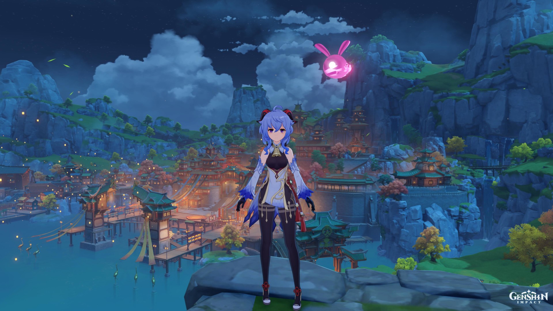 For instance, here’s Ganyu just chilling (pun intended) on a cliff overlooking Liyue Harbor:
