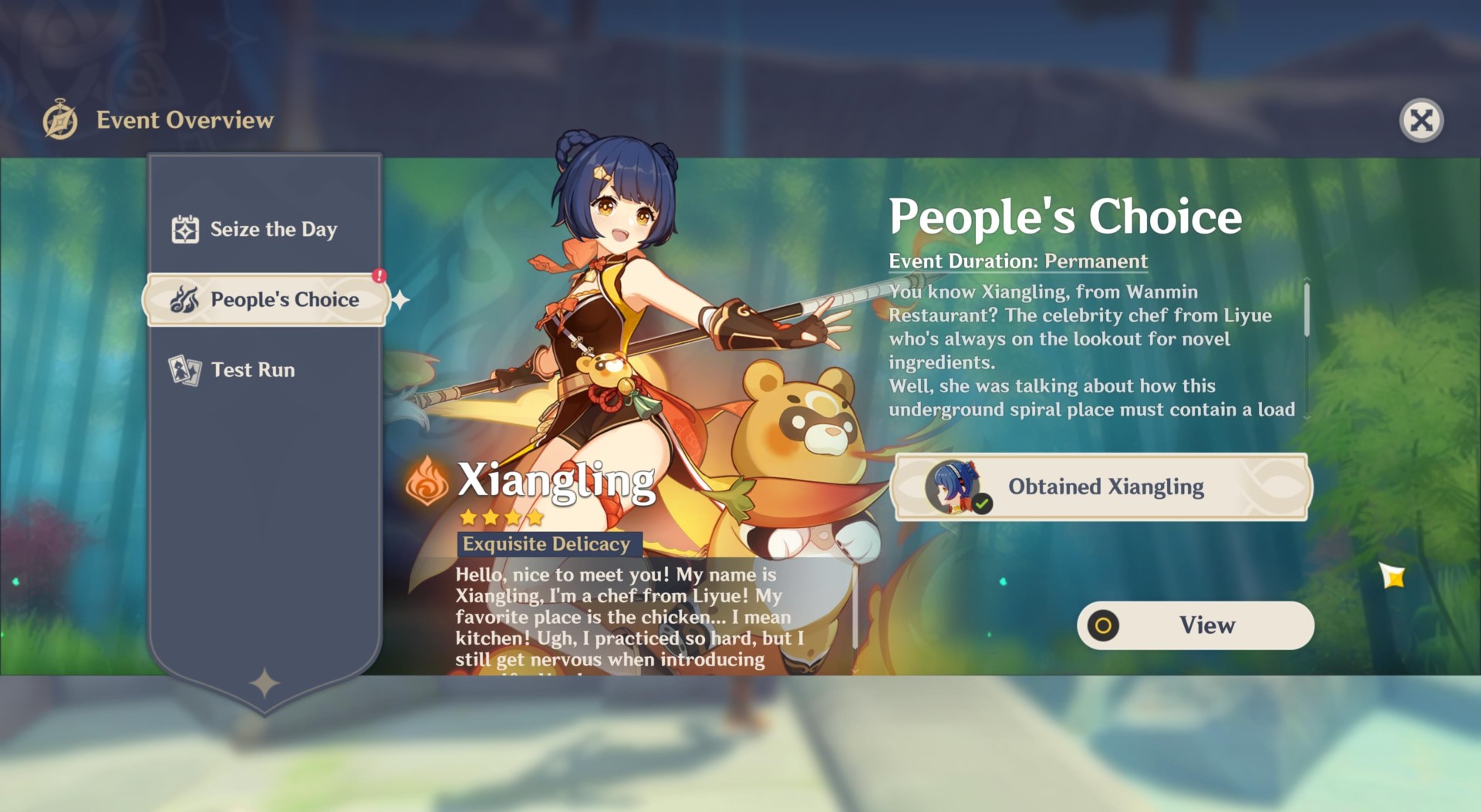 Note: If you obtained Xiangling already via a Wish microtransaction, the reward you get here will be considered a “duplicate.” You’ll get a “Stella Fortuna” item that unlocks her constellation talents.