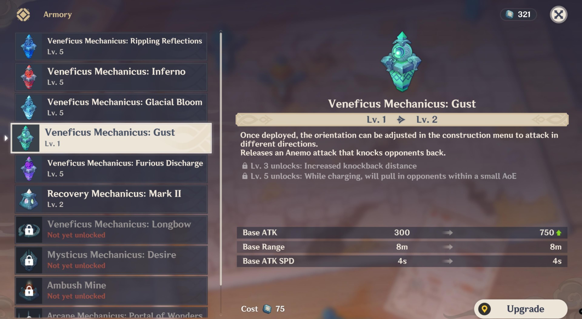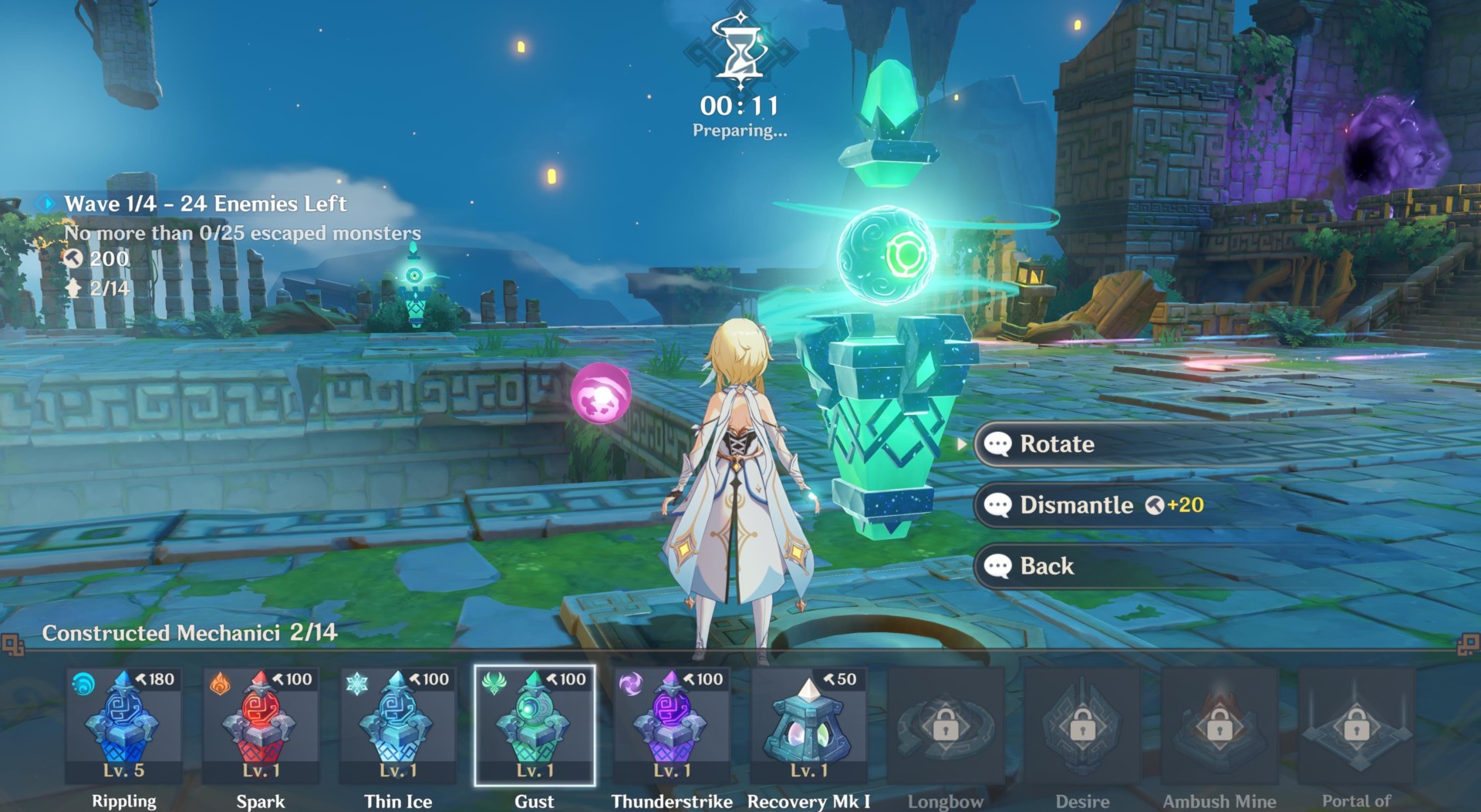 Granted, we’ve only seen the easier difficulty levels in Theater Mechanicus. The Gust tower might be valuable down the line once enemy defenses are tougher, and pushing mobs off ledges is your only course of action. For now, though, Sucrose, Venti, and Jean already have your knockback/swirl needs covered.