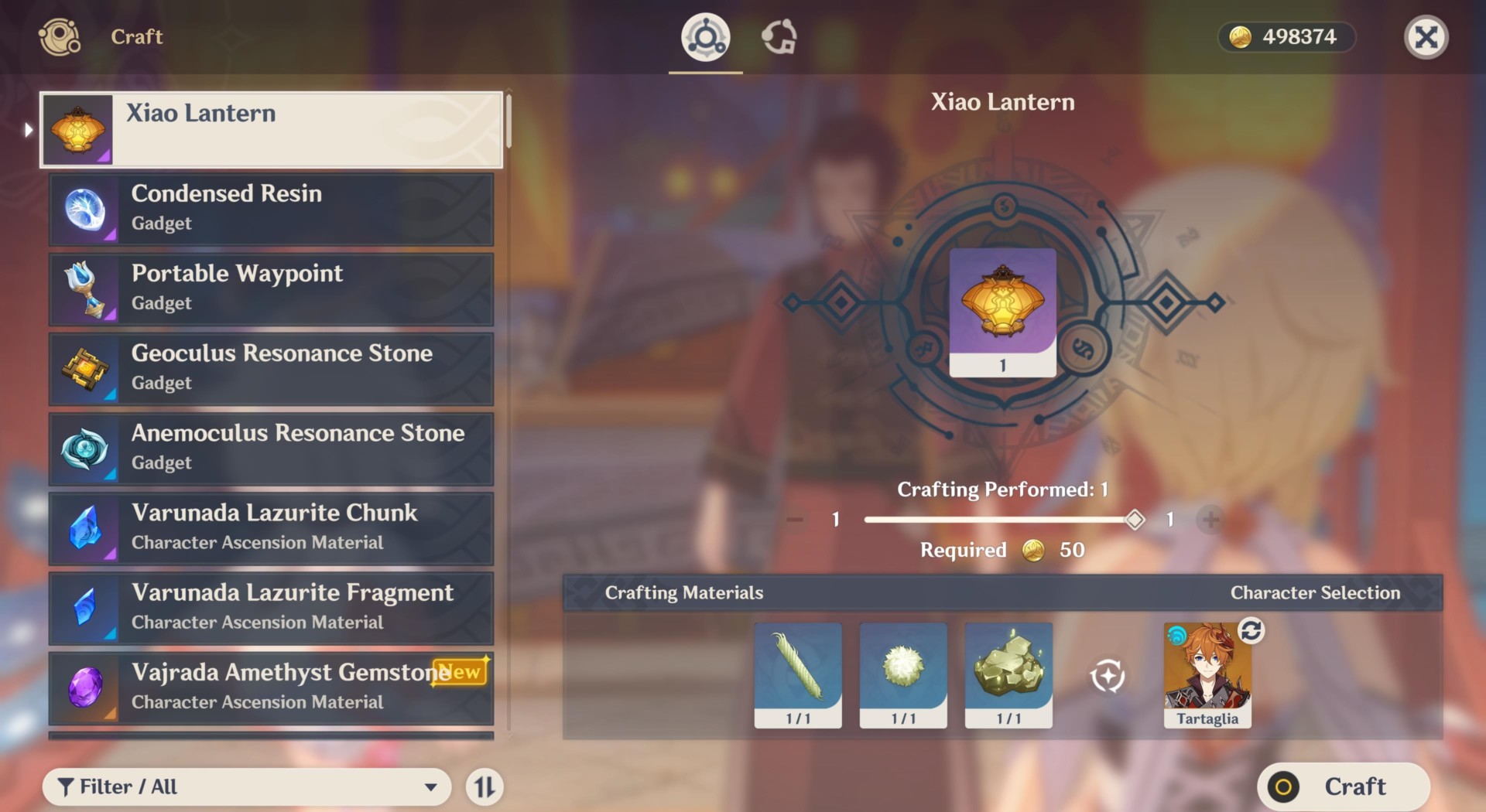 Xiao Lanterns can be crafted via the alchemy bench, and you need the following ingredients: