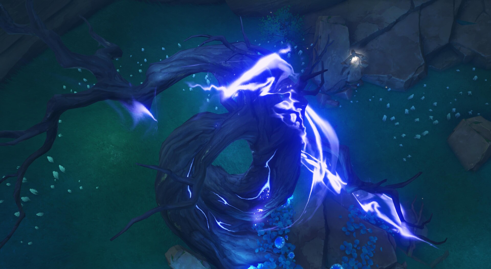 - Travel along pathways with lanterns (light them with Electro if they’re purple).