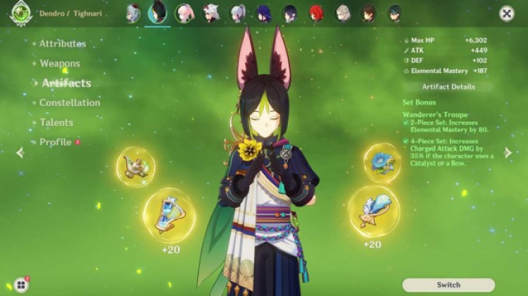 Genshin Impact Tighnari best artifacts guide – Deepwood Memories, Gilded Dreams, or Wanderer’s Troupe
