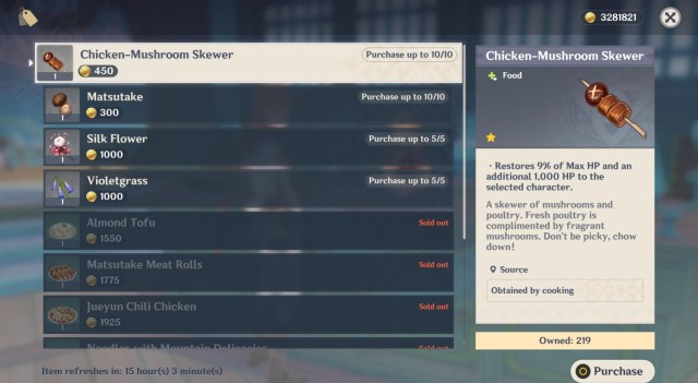 Verr Goldet in Wangshu Inn sells five Violetgrass every 48 hours.