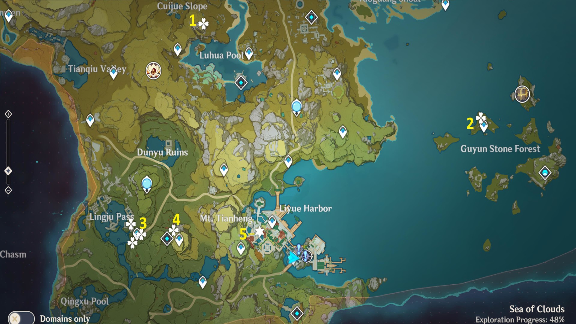 Let’s talk about the Violetgrass locations in the southern portion of Liyue.