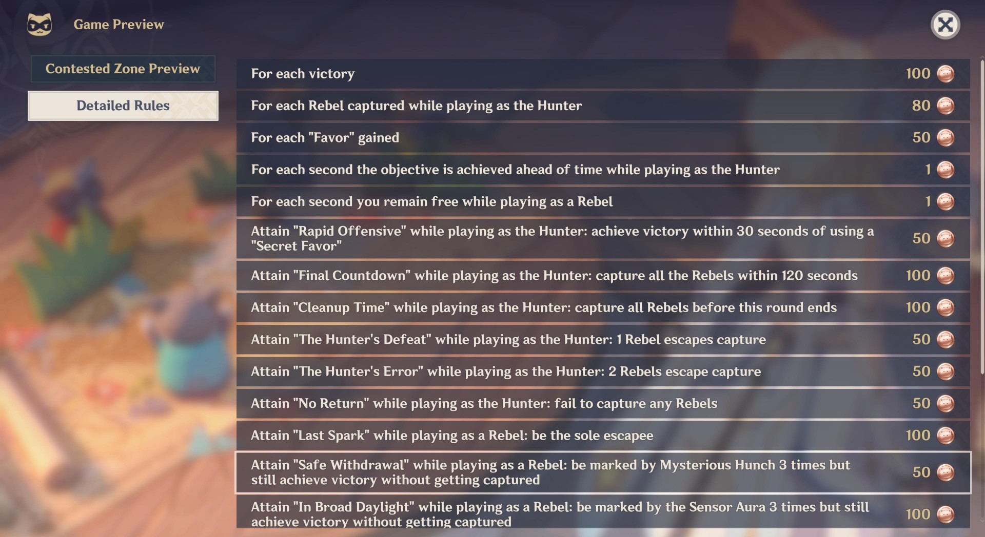 Okay, so, what about the Windtrace Coins? Well, you’ll obtain more depending on the scoring system. If you click on game preview -> detailed rules, you’ll see a list of the actions, tasks, or achievements that you can do during a match. In turn, you’ll receive Windtrace Coins once you’ve finished a game.
