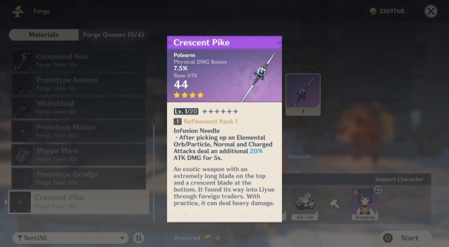 The Crescent Pike lets Xiangling’s attacks deal extra damage after picking up an elemental orb. The physical damage bonus also helps immensely with her basic weapon combos.