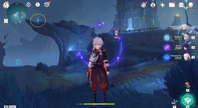 Yachimatahime’s Trial or Yachimatahime’s Locus is connected to the Evernight Temple area in Genshin Impact. Go to the pool of water in the grassy area in the northern section of this zone. Then, glide and let the Ghostfish current take you through the portal.
