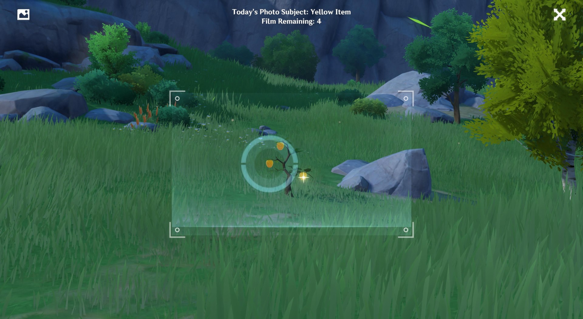 As usual, prepare for a bit of randomness with the colors you’ll get even if we are looking for yellow items. Oh, and as an aside, have you noticed that the ocher (brown) color seems to be very rare? Well, you’re not the only one because Genshin Impact Reddit user Soaringneutrality saw this discrepancy too. Looks like you might need to do a few trades with people on your buddy list unless the next two days give us more ocher-colored photographs.