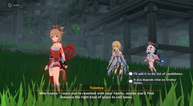 The next steps basically involve roaming around Inazuma to talk to various NPCs so you can help one of Yoimiya’s pals, Sakujirou, escape the city. There are long conversations here that might annoy you to no end. Yoimiya’s bubbly personality might shine through, but the dialogue gets boring after a while.