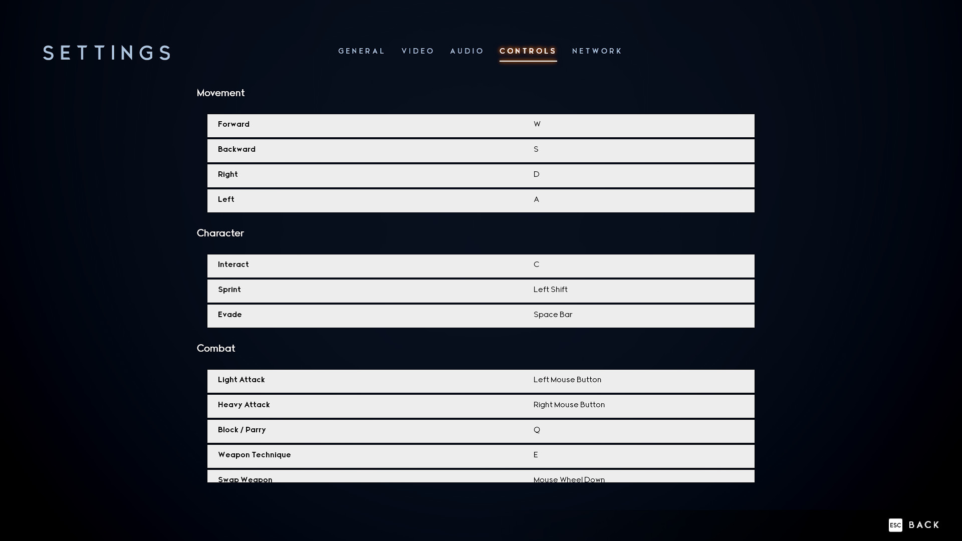 PC controls are also completely rebindable via the menu: