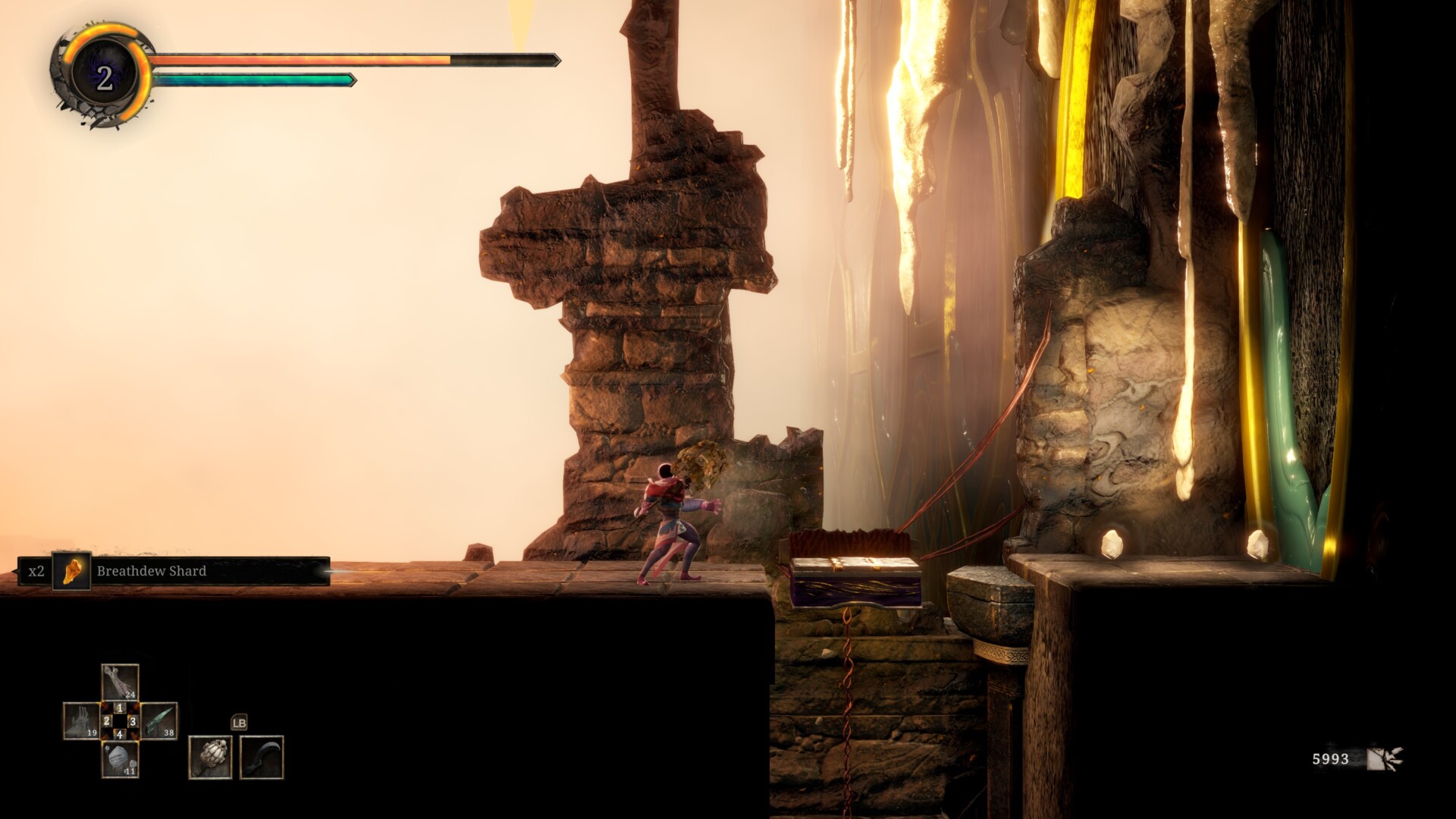 Once you’ve found the opening, you can pick up 3x Living Flesh, 2x Breathdew Shard, and 1x Breathdew Droplet.