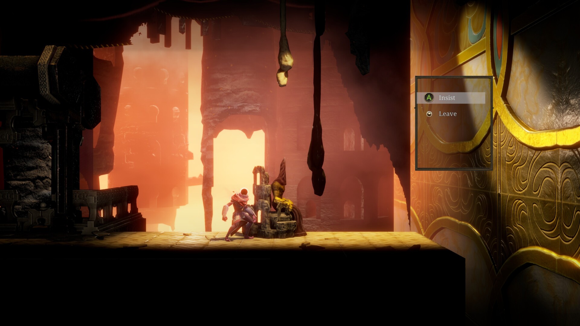 Anyway, to your right, you’ll find the Artisan of Flesh. Keep talking to it until the “insist” command pops up. This will cause your character to punch it, and it’ll teleport to the ballroom. If you attack the Artisan of Flesh, it’ll begin the boss fight.