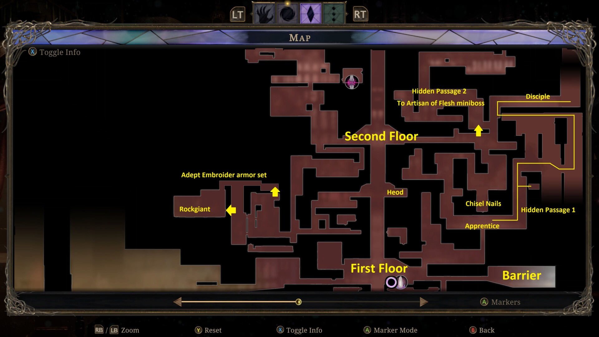 Note: The ledge across the Artisan’s initial spot has 2x Living Flesh.