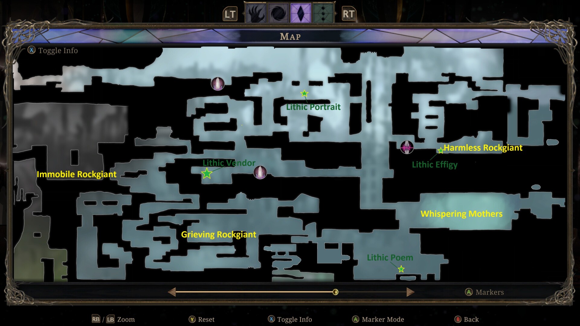As for the Grieving Rockgiant (+Breath Capacity), it’ll show up only after speaking to the Immobile Rockgiant and killing the Whispering Mothers. But, it’ll also despawn later in the game. Try to defeat it before opening the Carven Palace barrier.