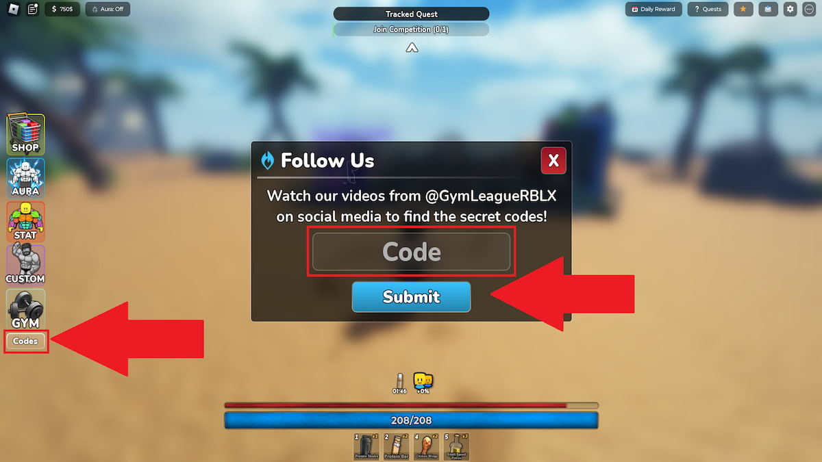 Redeeming codes in Gym League is easy—just follow the steps below: