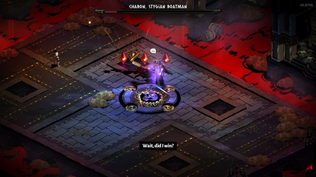 If you do this, Zagreus will be teleported to a special arena in Erebus. He’ll attempt to explain himself to Charon to no avail and the battle would commence.