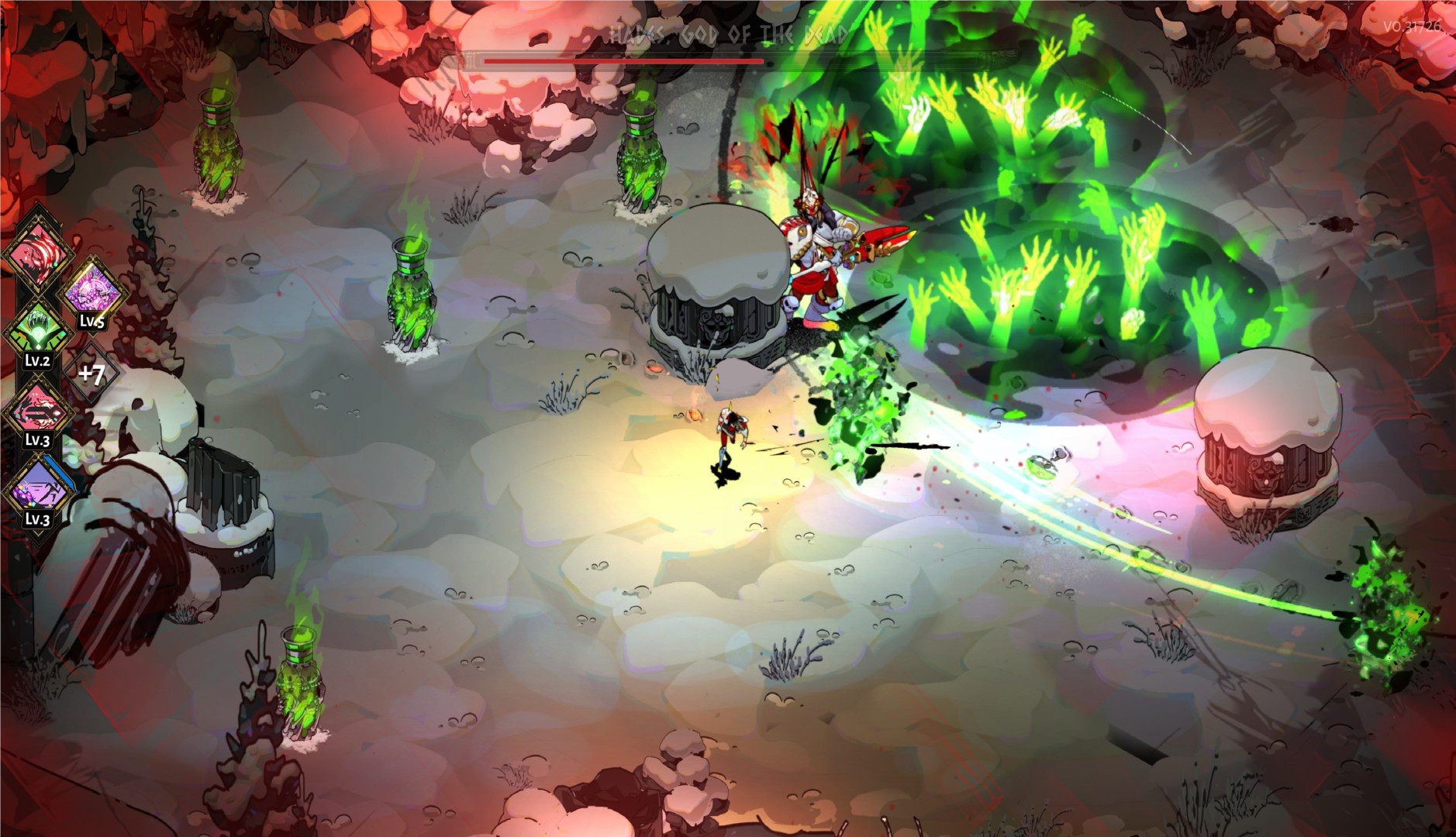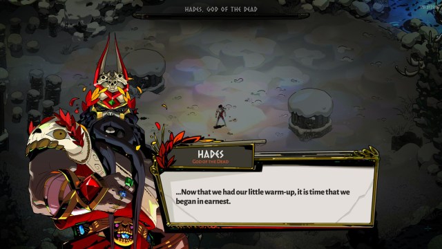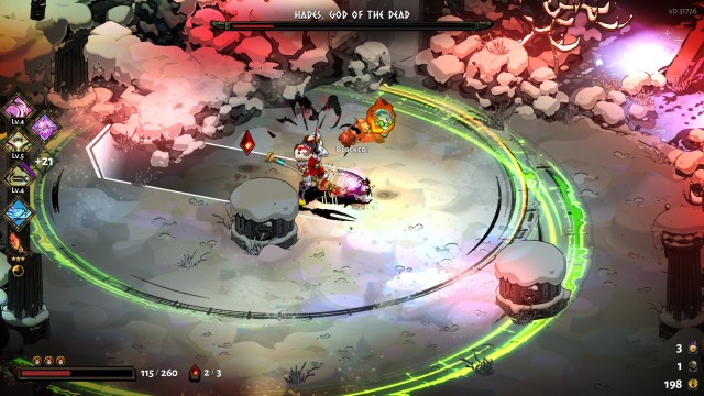 Hades is the final encounter in, err, Hades. He’s located in the final area of the Temple of Styx level after you’ve distracted Cerberus. This snowy garden serves as the backdrop for the conflict between father and son, and you’ll find a couple of pillars that you can use to avoid a bit of damage. Be forewarned, though, because Hades has damage spikes that can obliterate Zagreus if you’re not careful.