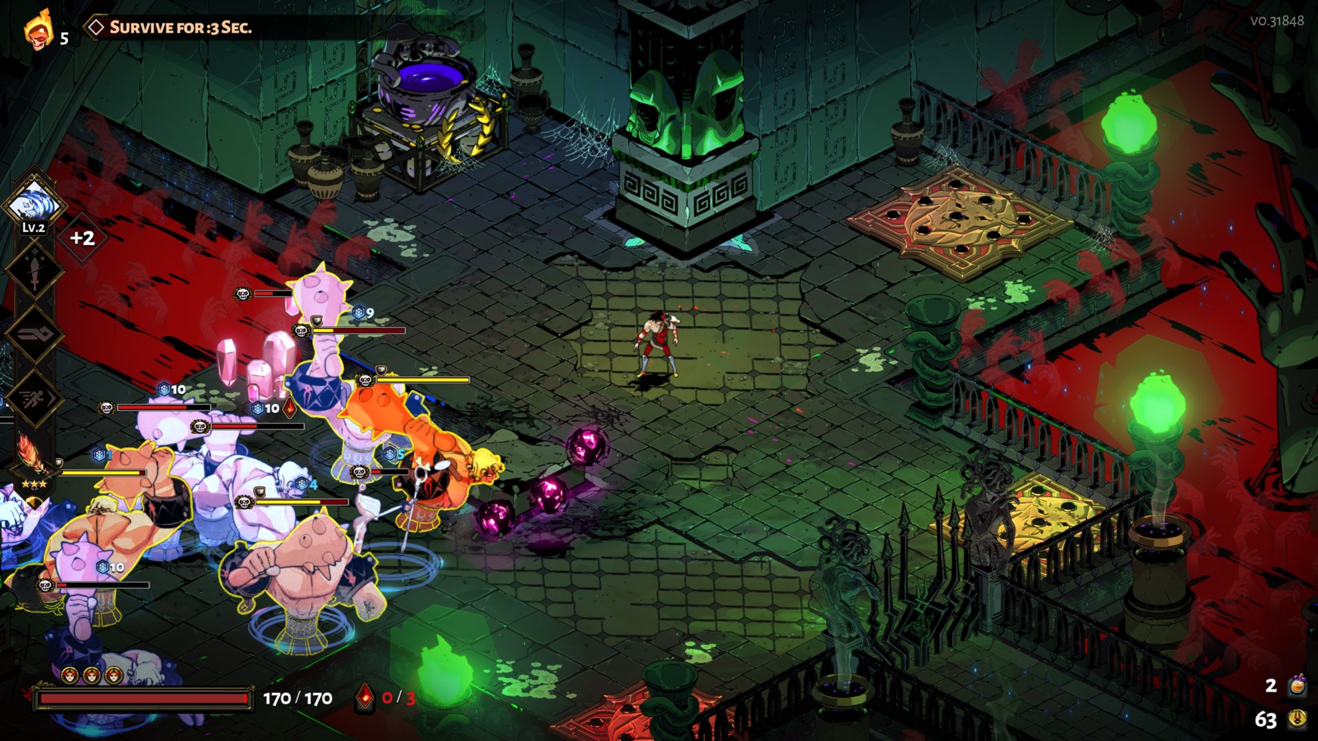 Tartarus also has a special timed encounter that can only happen in this area in Hades. You’ll be trapped in a random room with a timer winding down from 30 seconds. You need to survive waves of mobs until the time has elapsed. The mobs would die and you’ll be able to pick up your loot.