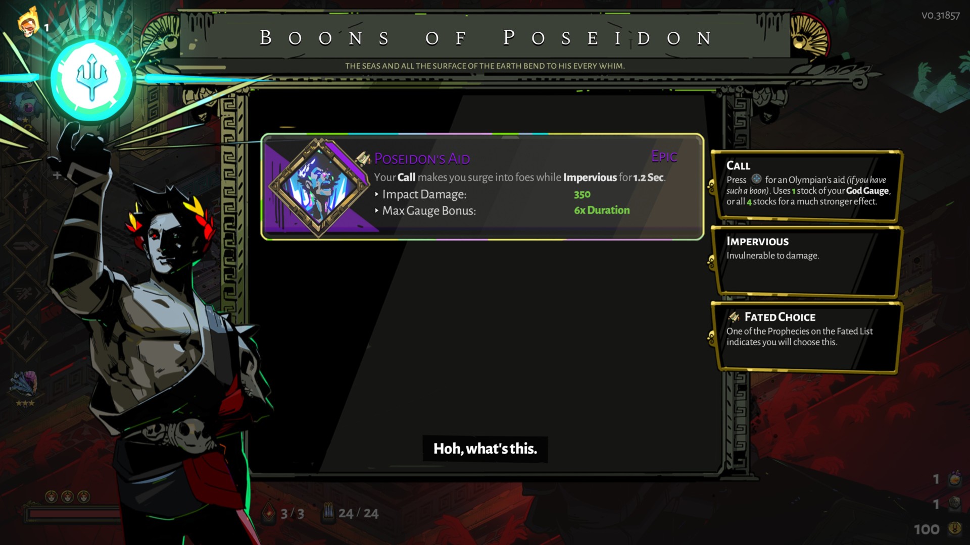 Anyway, this should unlock the “Call Aid” button on the left side of your screen. You’ll also see a bar on the lower left-hand side of your UI known as the God Gauge. From this point onwards, there’s a chance in future Hades runs that Olympians will provide you their “supers.”