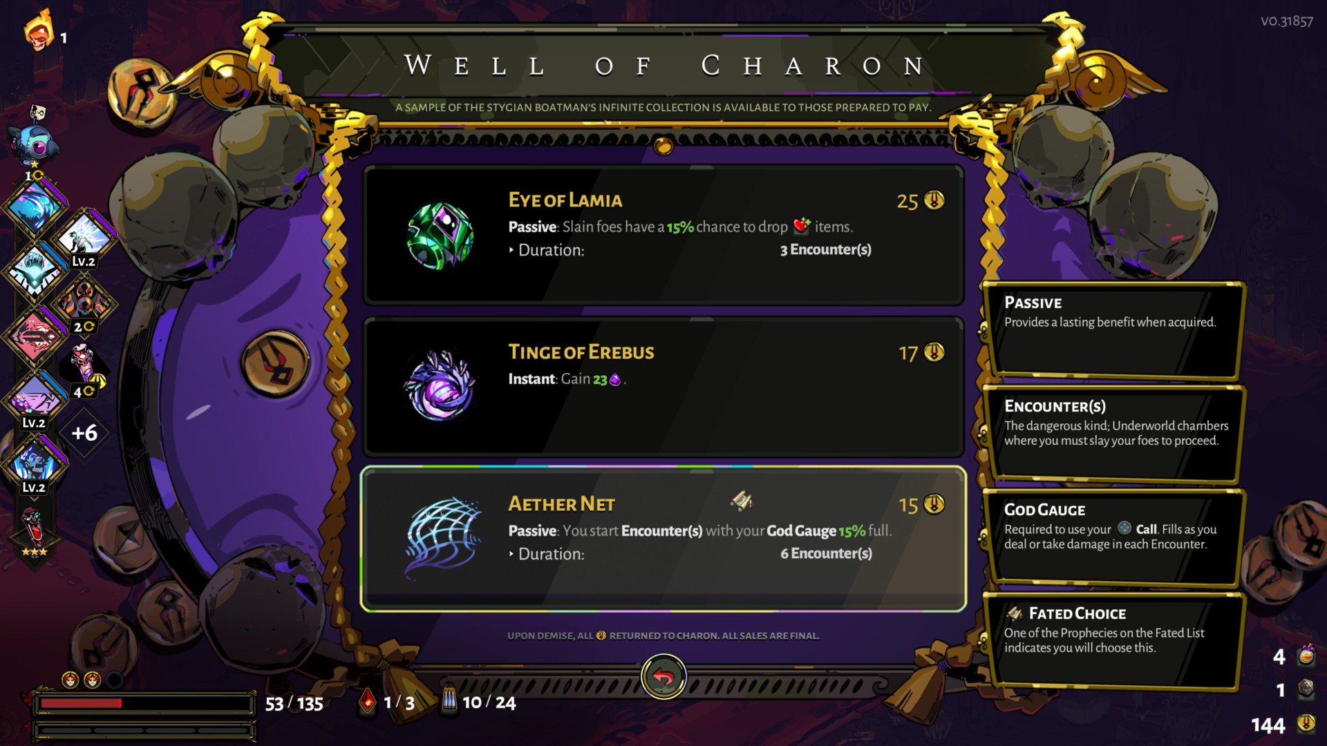 - Aether Net item from the Well of Charon – Start each encounter with the gauge 15% full.