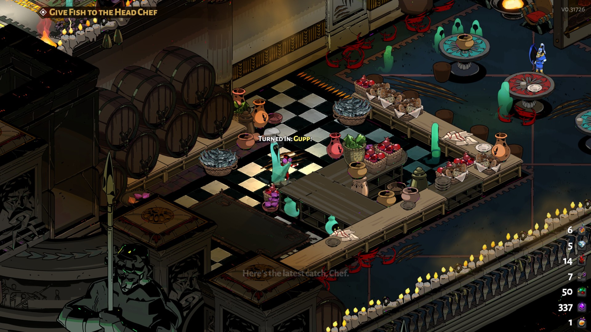 Note: The Head Chef near the Wretched Broker gives you various items such as Nectar, Diamonds, Titan Blood, and more (for free) depending on the fish you’ve caught during your Hades runs.